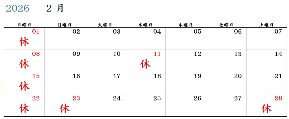 2026年2月3月の営業日のお知らせ